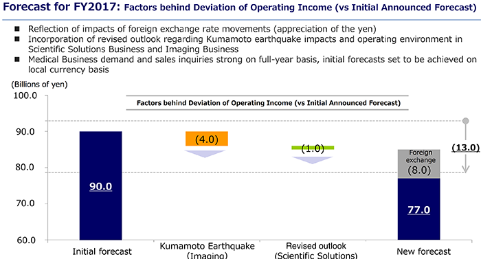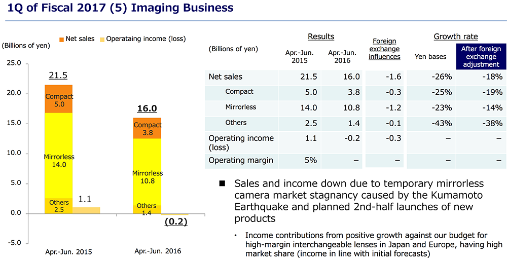 Sales and income down due to temporary mirrorless camera market stagnancy caused by the Kumamoto Earthquake and planned 2nd-half launches of new products