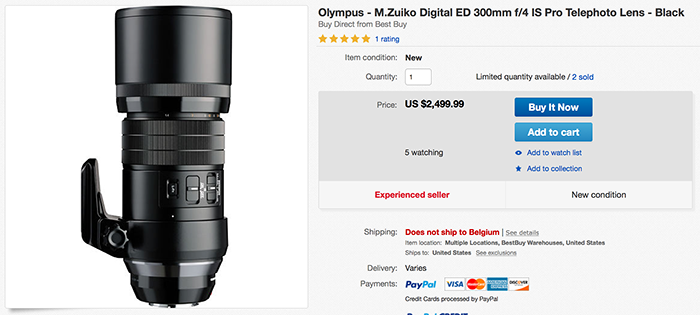 The Olympus 300mm PRO lens is back in Stock in USA via [shoplink 59529 ebay]BestBuy on eBay (Click here)[/shoplink].