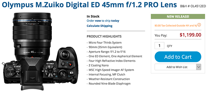 45mm at Amazon, BHphoto, Adorama and GetOlympus.