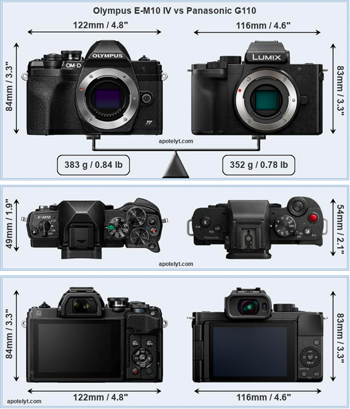 Olympus E-M10 IV vs Panasonic G110 size comparison