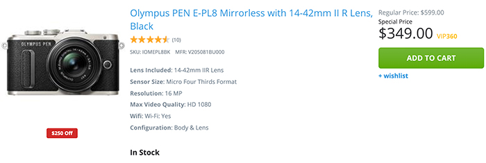 Olympus E-PL8 with kit lens now for $349 only at Adorama September 24, 2019 deals 0 Comments Olympus E-PL8 with kit lens now for $349 only at Adorama (Click here).