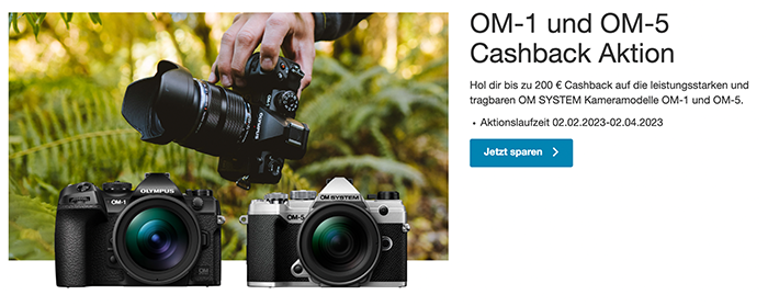 There is a new cashback action on the OM-1 and OM-5 cameras at Olympus Germany, Olympus France, Olympus Italy, Olympus Spain, Olympus UK, Olympus Netherland.