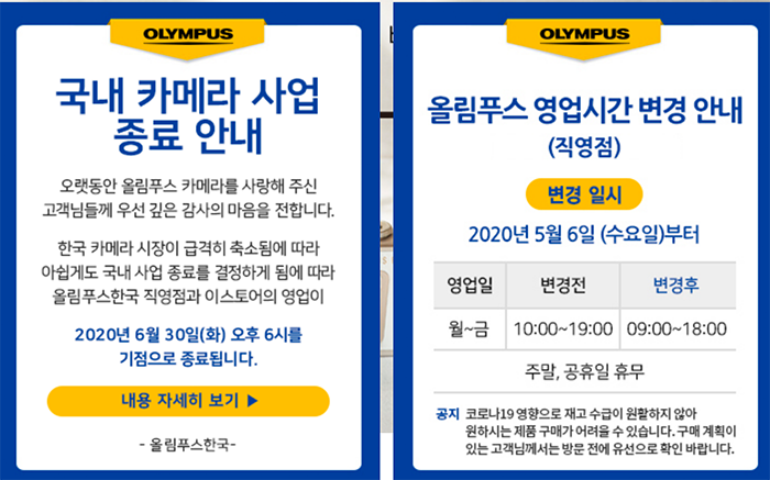In a statement, Olympus Korea said it will “cease its imaging business in Korea, effective June 30, 2020.” Its Brand Store, a store operated by Olympus Korea in southern Seoul, and its online shopping mall E-store will also be closed on the same day.