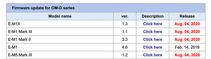 Olympus firmware update for the E-M1X, E-M1III, E-M1II- E-M5III and 12-100mm lens August 6, 2020 news 0 Comments Download it here: cs.olympus-imaging.jp/en/support/imsg/digicamera/download/software/firm/e1/
