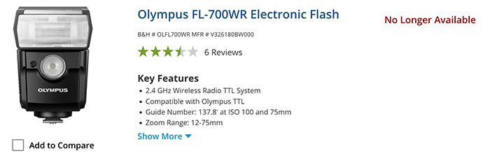 Olympus FL-700WR Electronic Flash no longer available according to BHphoto December 11, 2022 news 0 Comments The Fl700WR Flash seems to have been discontinued according to BHphoto.