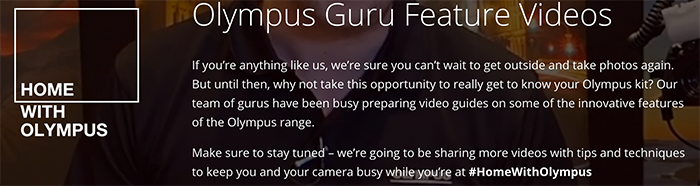 Check out the new Olympus Guru Feature Videos at Olympus-imagespace.co.uk. And you can also join virtual sessions here.