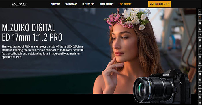 If you haven’t visited the Olympus Cameras and Lenses website lately, you might want to take a look. With the introduction of the M.Zuiko PRO F1.2 series, several panels on the M.Zuiko PRO and Lens Gallery pages have been updated. For those of you who have yet to visit the site, the Lens Gallery lets you view photos taken with each lens and also lets you see what the lens looks like attached to the camera. See for yourself: