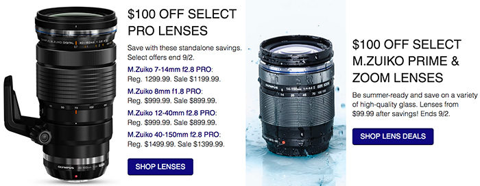 Last hours of the big Olympus lens savings at GetOlympus and BHphoto.