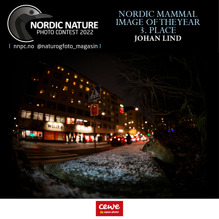 This is a young rat, looking out at Torkel Knutssongatan here in Stockholm, one block away from where we live. It was a young rat in a family of four rats that lived in this flower bed next to Bysis torg during the last winter. In mid January the city council put out poisoned rat bait in the flower bed. A few days later the family disappeared. Urban life has its risks.Who am I? I’m Johan Lind, from Stockholm, Sweden, an award winning nature photographer and elected member and former chair of the Swedish Association for Nature Photographers.