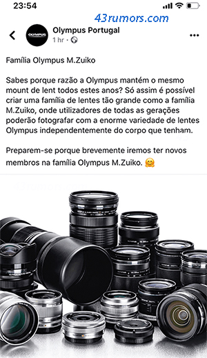 Olympus Portugal officially confirmed new lenses will be announced soon. Like I told you previously Olympus will have a BIG announcement day in mid February. Expect to get the E-m1III, maybe the finalt 150400mm specs unveiling and maybe another new lens…