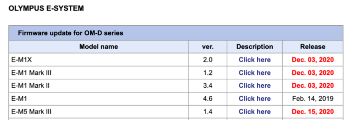 Olympus released the E-M5 Mark III firmware 1.4 update
