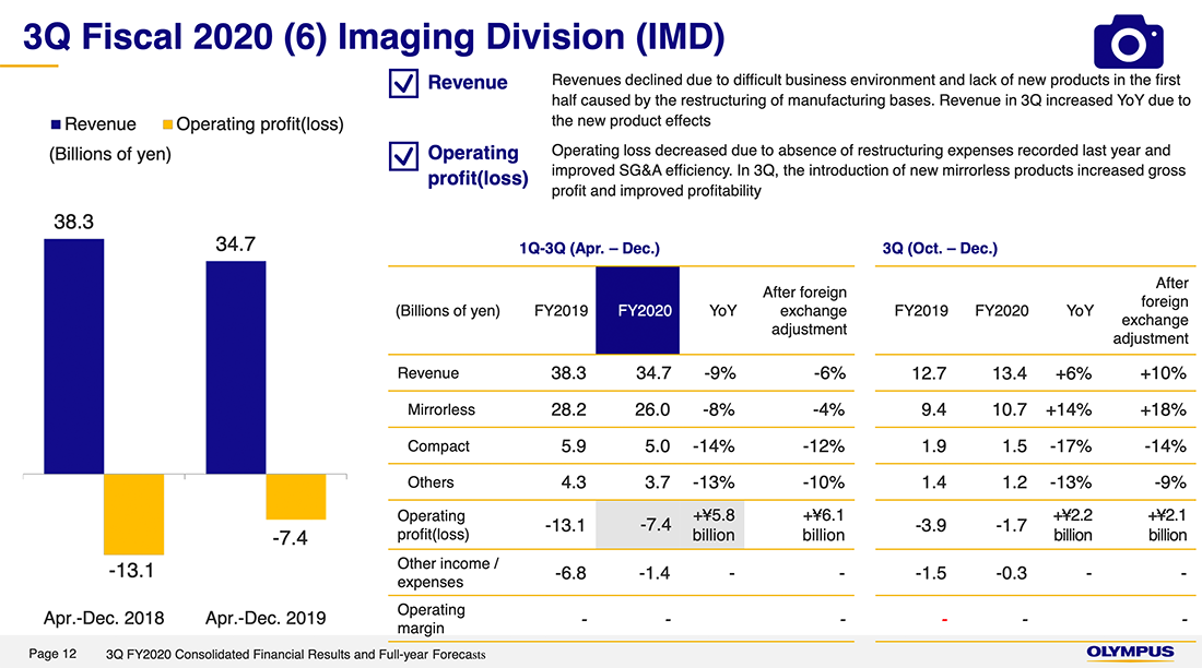 Olympus published the Q3 financial report and once more we have the same narrative: The compnay as a whole is doing very well but the Imaging Business is still unprofiteable.