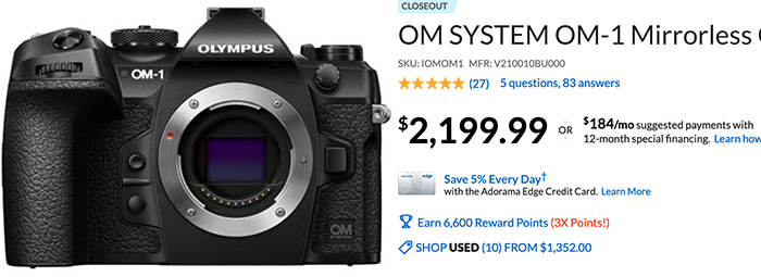 OM-1 marked as discontinued by BHphoto September 28, 2024 news 0 Comments The OM-1 is no more at BHphoto. And it’s marked as “close out” at Adorama.