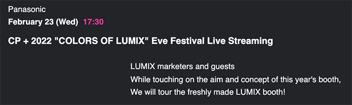 The CP+ page now officially displays the OM Digital and Panasonic Lumix event:
