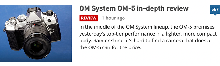 OM System OM-5 in-depth review at Dpreview: “hard to match anywhere in the photography world”