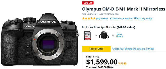 E-M1II now for $1,599 only at Amazon, BHphoto, Adorama and GetOlympus.