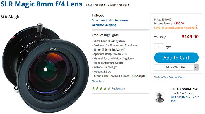 The SLR Magic 8mm f/4.0 MFT lens is in Stock for just $149 at BHphoto.