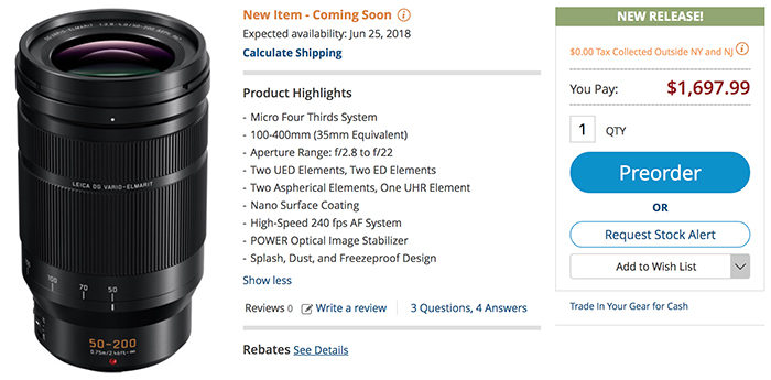 The new Panasonic 50-200mm lens shipment start is now scheduled for June 25th according to a new updated info posted by BHphoto.