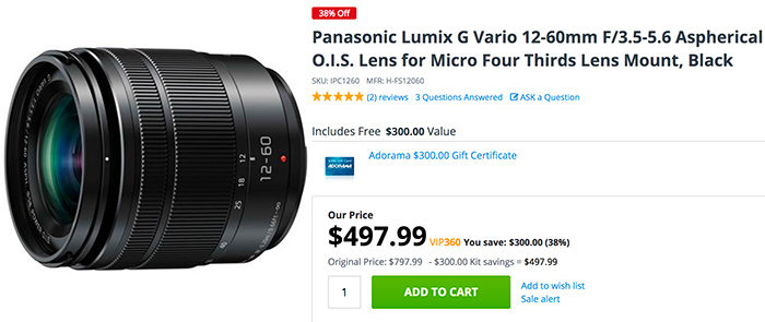 Panasonic Lumix G Vario 12-60mm F/3.5-5.6 Aspherical Power O.I.S. Lens for Micro Four Thirds Lens Mount, Black | $498 (Includes $300 Adorama gift Card) https://www.adorama.com/ipc1260.html