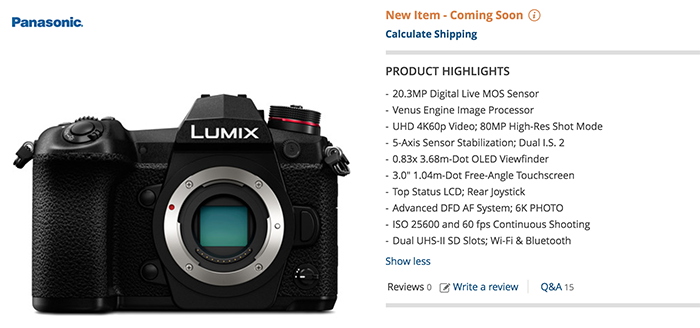 Panasonic G9 at BHphoto. Amazon. Adorama. FocusCamera. AmazonDE. Wex UK.