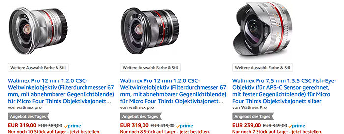 This runs today only: Up to 53% off on Wallimex (Samyang) MFT lenses at Amazon Germany (Here is the full list). All EU citizen can buy from Amazon Germany!