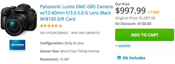 You get a free $100 gift card with the G85 sold by Adorama (Click here). They also offer such a gift card on other Panasonic cameras:
