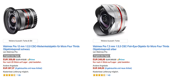 Today only you can save up to 40% on Wallimex (Samyang brand) MFT lenses sold by Amazon Germany (Click here).