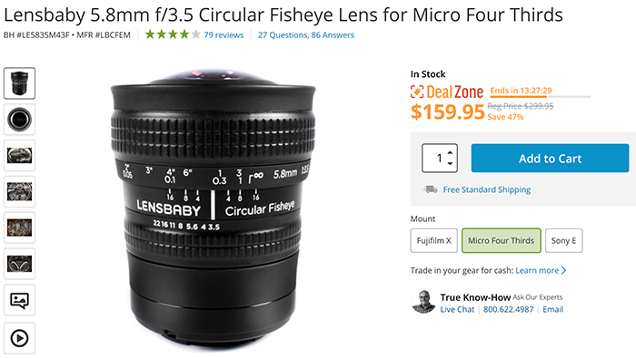 Today only: $140 off on the Lensbaby 5.8mm f/3.5 Circular Fisheye Lens for MFT sold by BHphoto.