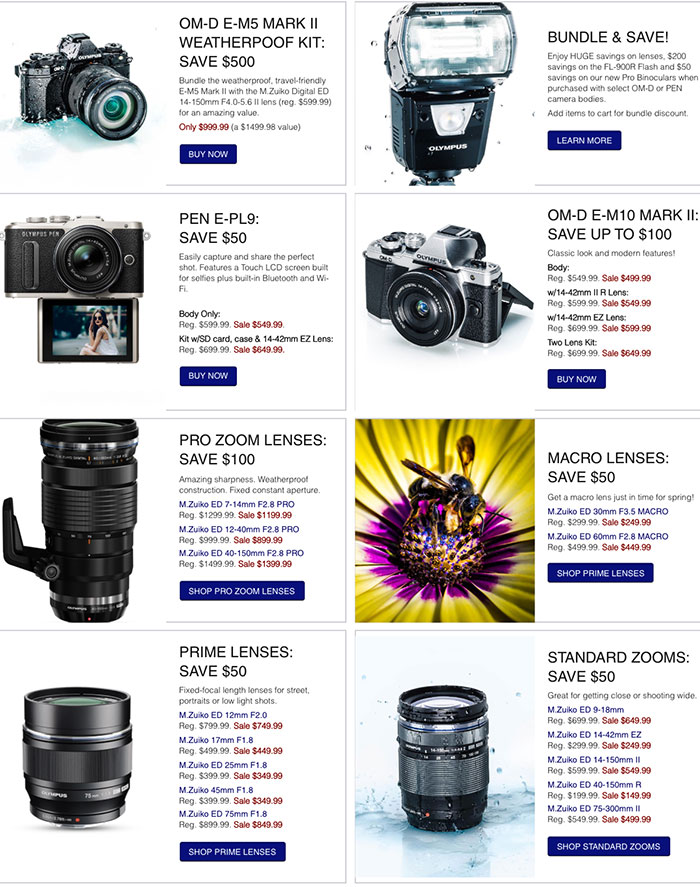 Ful list of Olympus camera and lens deals