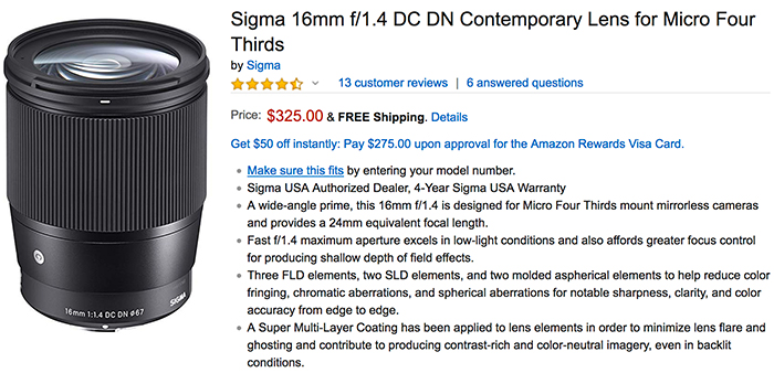 lens mount: Micro Four Thirds