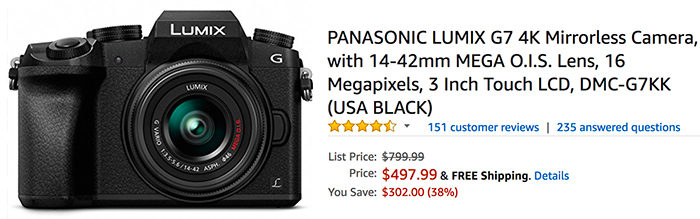 The Panasonic G7 got a $100 price drop and sells for $497 at Amazon, Bhphoto and Adorama.