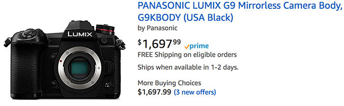 Panasonic G9 at BHphoto. Amazon. Adorama. FocusCamera. AmazonDE. Wex UK.