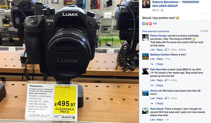 Roberto spotted the GH4 on clearance in a UK store at Currys in Purley, Croydon. That store is no more ordering a new Stock of GH4 cameras and is likely to wait til the GH5 gets announced. Photokina is coming, let’s just hope Kumamoto didn’t delay the GH5 shipment time!