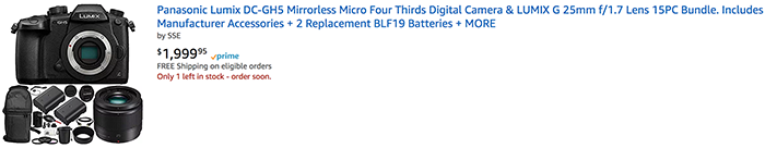 Panasonic GH5 with free 25mm f/1.7 lens at Amazon US