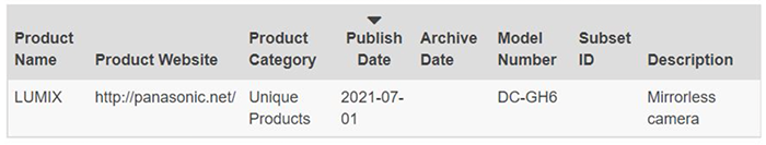 Panasonic GH6 officially registered