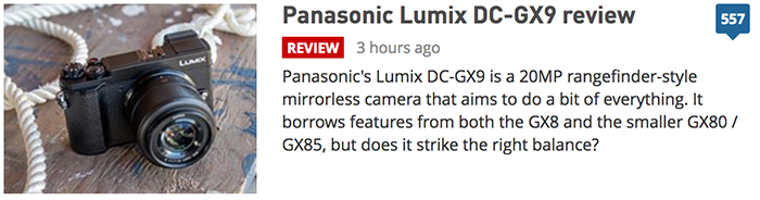 Dpreview published the full review of the new Panasonic GX9:
