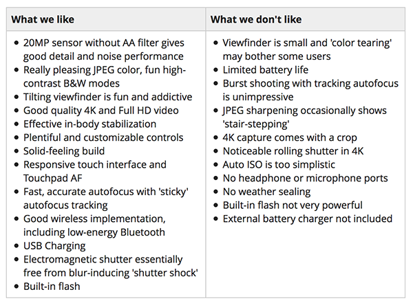 With its compact size, robust feature set, abundant controls and overall responsiveness, the Panasonic Lumix DC-GX9 is a great camera for all kinds of photographers. The trick tilting viewfinder is a neat touch (though we wish it were larger), and limited battery life remains a sticking point. But impressive in-body image stabilization, a pleasing JPEG engine and good quality 4K capture mean the Lumix GX9 is a camera we can easily recommend.