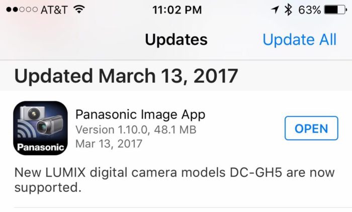 Panasonic Image App update released. Now adds full GH5 support!