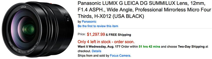 The new Panasonic Leica 12mm f/1.4 lens is in Stock at Amazon and BHphoto.