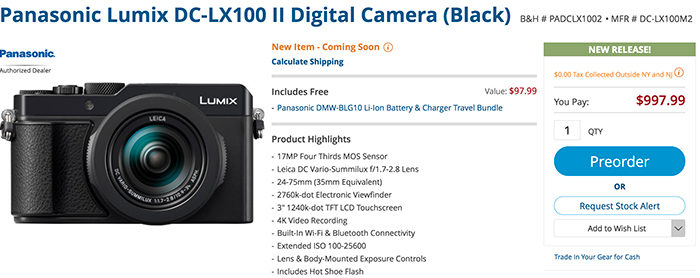 LX100II at Bhphoto. Adorama. FocusCamera. WexUk.