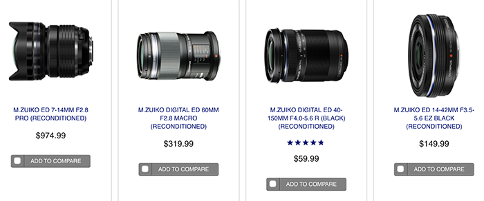 Olympus listed a very large Stock of new reconditioned cameras and lenses on their GetOlympus page (Click here). Note that you get the 40-150mm lens for $59 only!