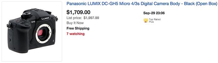 The Open Box GH5 with full 1 year Panasonic US warranty selld for $1,709 on eBay (via Samys).