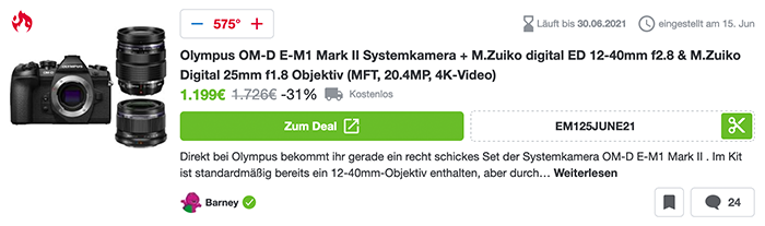 Using the checkout code “EM125JUNE21” you save 31% on this superbundle sold directly by Olympus Germany.