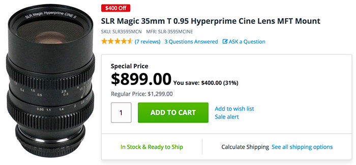 SLR Magic 35mm T 0.95 Hyperprime Cine Lens – $899 (Reg Price $1,299)