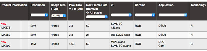 Sony now lists two new Four Thirds sensors (20 and 11 Megapixel)
