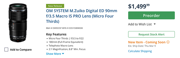 Stock of the new 90mm macro arrived in stores. But shipment will start only on March 9