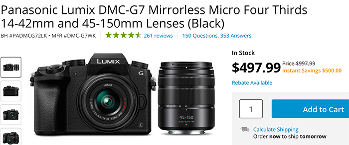 You now save $500 on the G7 double kit sold by BHphoto, Amazon and Adorama.
