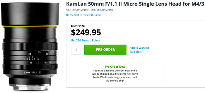 The new Kamlan 50mm F/1.1 II for MFT is available for preorder on Adorama