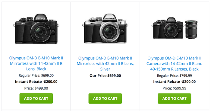 Save $200 on the E-M10II with kit lens at Adorama, BHphoto, Amazon, GetOlympus