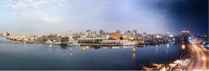 Beating Heart – The Dubai Creek, typically bustling with activity, in a very unusual calm state, as this was shot during lockdown over two days in April 2020.